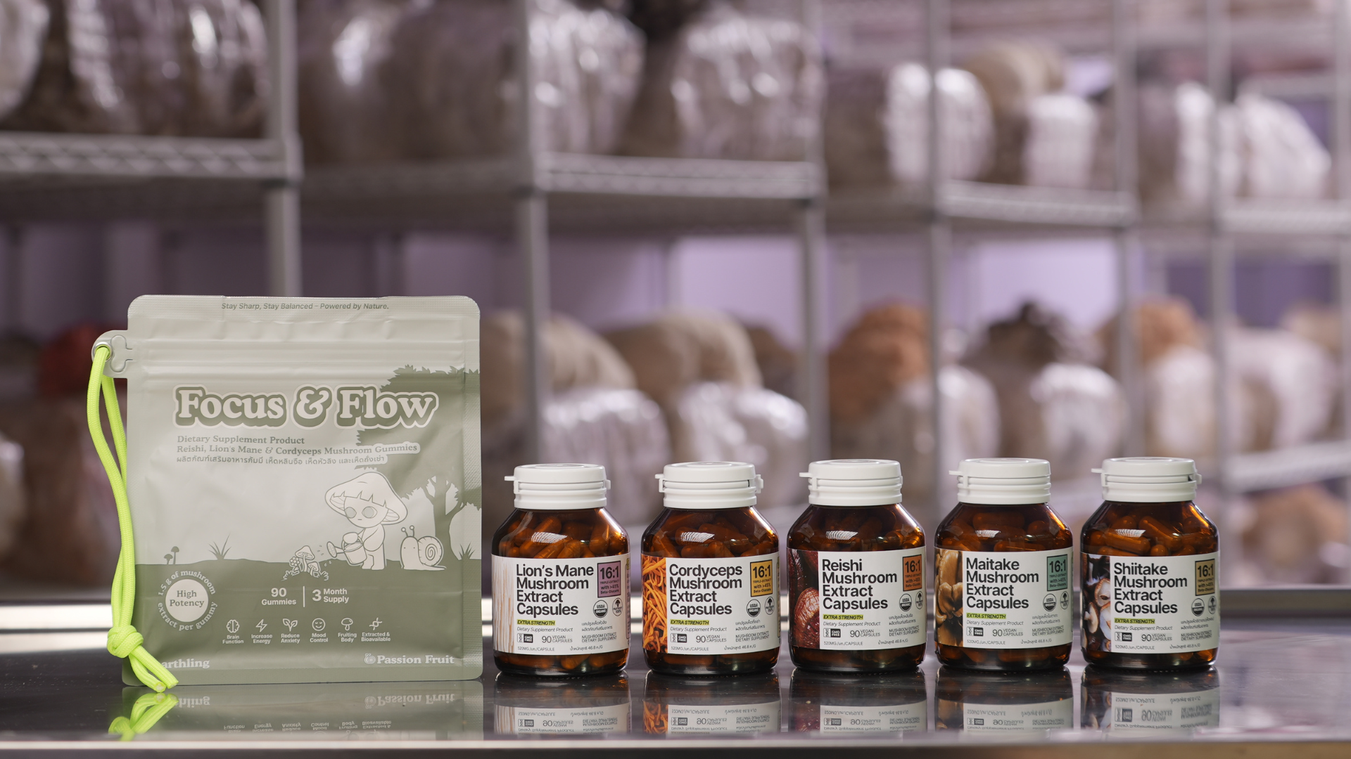 Focus & Flow Gummies for easy, consistent, and convenient dosing of the 3 most popular mushrooms.